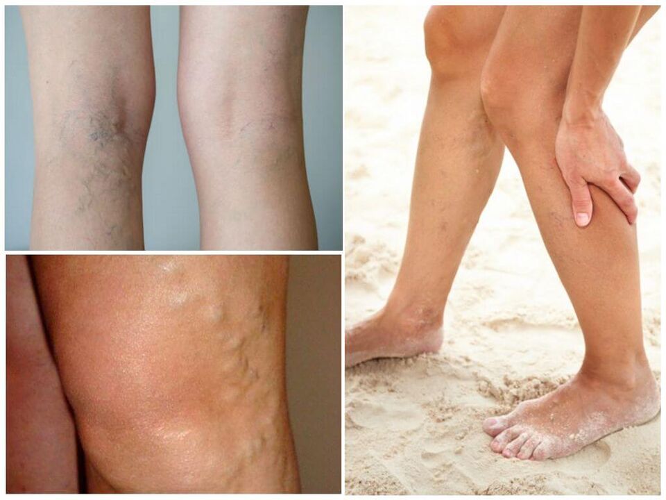 1. Ändern Sie die Art der oberflächlichen Venen. An den Füßen und den Unterbeinen können Sie die ersten Anzeichen von Schäden sehen, da das Pumpen von Blut von dort auch auch im Debüt der Krankheit leidet. Die anfänglichen Anzeichen von Krampfadern sind das Erscheinungsbild kleiner Gefäßsterne. Dies ist die Erweiterung des Venen -Netzwerks, sie ähneln einem kleinen "Oktopus" von dunkelviolettem oder purpurrotem. Ein solches Zeichen ist möglicherweise kein Symptom für Krampfadern, zeigt jedoch häufiger seine anfänglichen Manifestationen an.